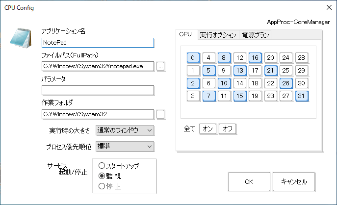 ※中にはPCで認識されている論理コアが全て割り当てられていることが前提のアプリケーションも
