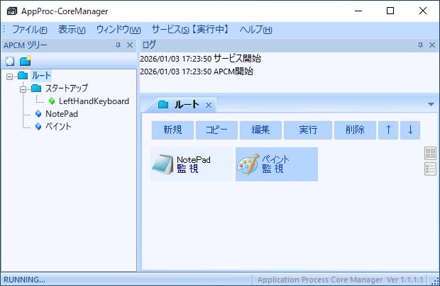 ※現バージョンではアカウント(ユーザー)ごとにプロセス情報を分けることが出来ません。